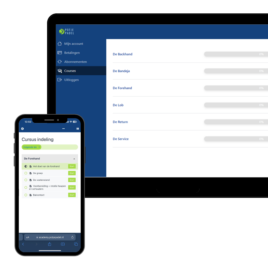 Leer gratis alle ins and outs van padel wanneer het jou uitkomt. Verbeter je spel met online lessen!